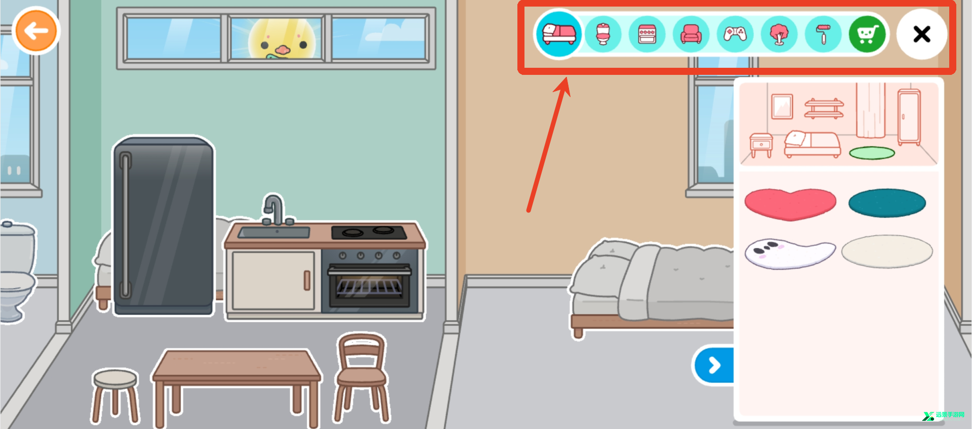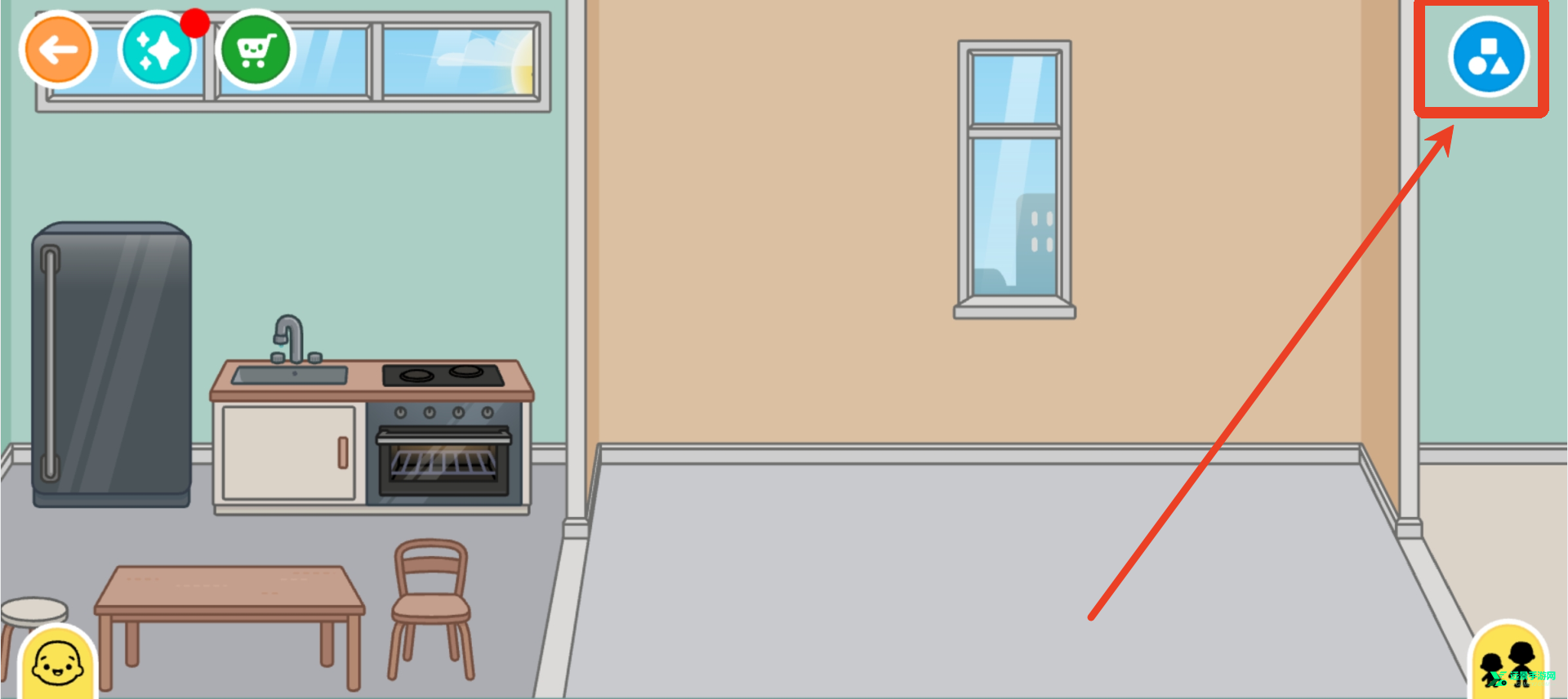 5、又或者点击左上角的退出房间按钮,去到自己的家中,可以看到也有很多小朋友,点击任何人物或者物品都可以移动。