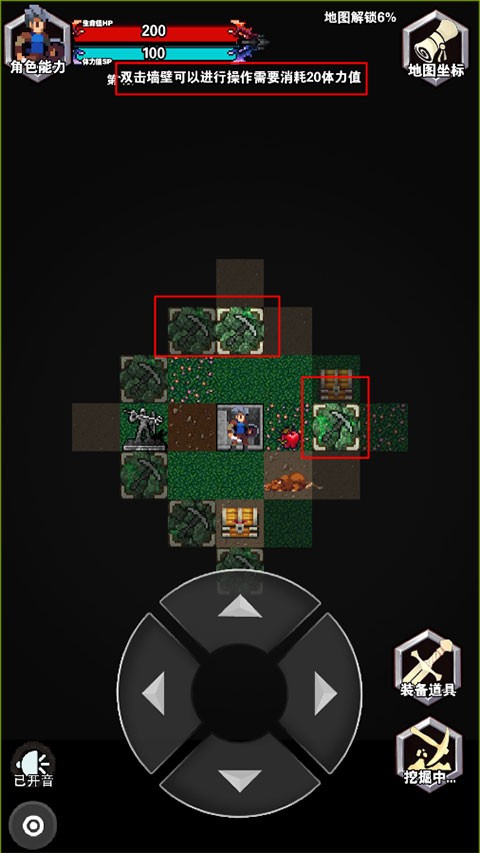 3、在关卡中可以双击挖掘墙壁,但是需要消耗20体力值;