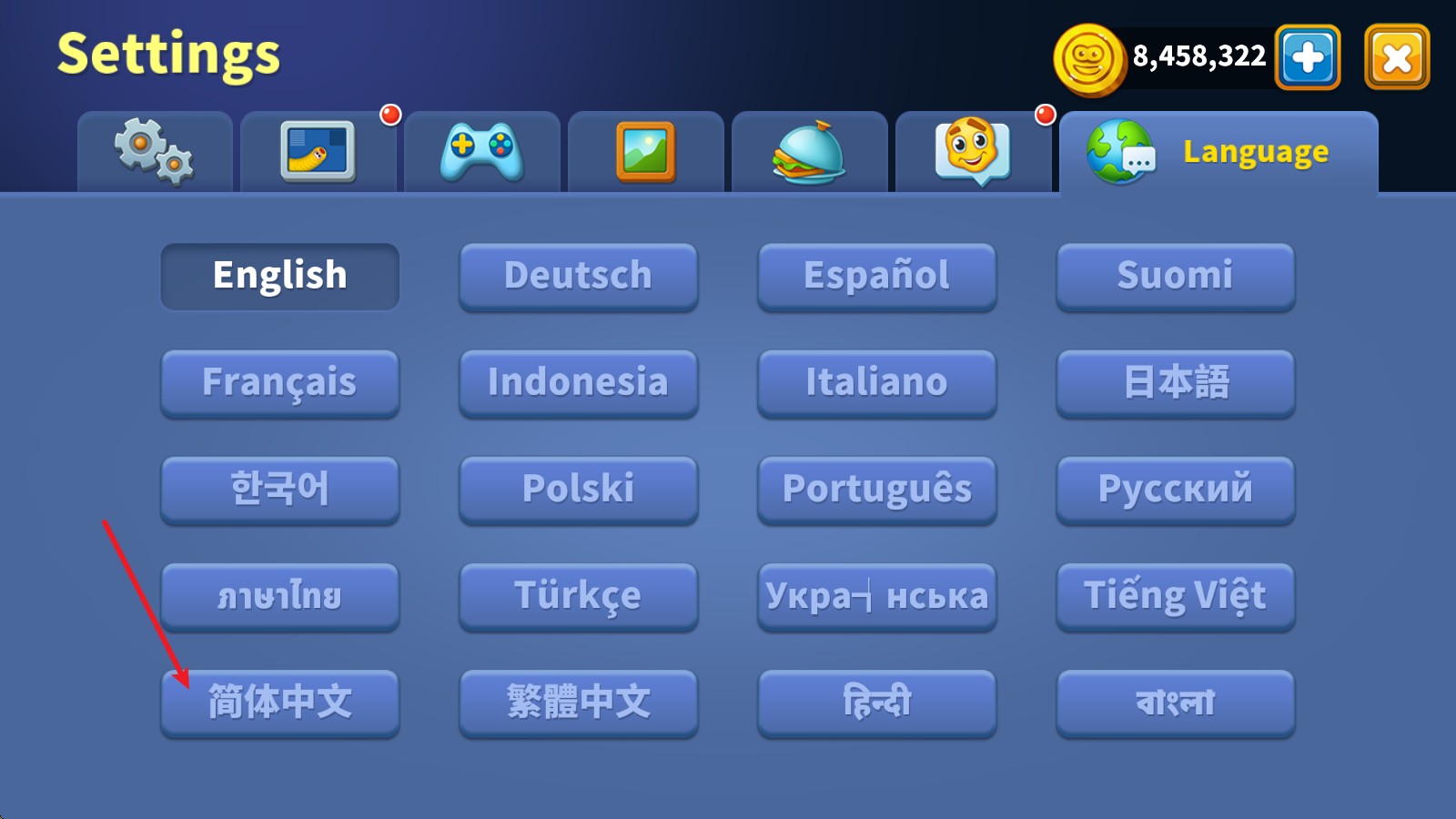 3、随后找到简体中文即可切换。