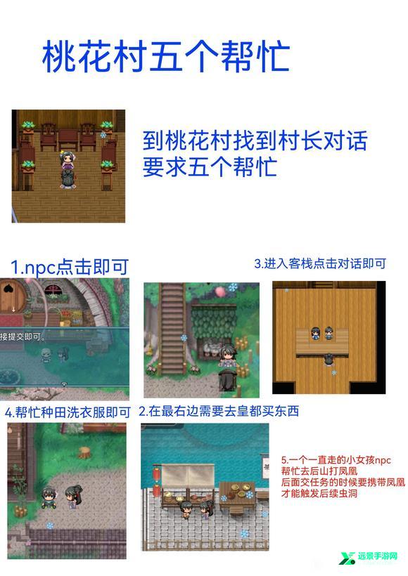 6. 桃花村帮忙任务:桃花村有五个帮忙任务,玩家需要根据具体的攻略来完成这些任务。