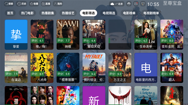 1、首先下载并安装至尊宝盒TV,安装完成后打开app进入到主界面。