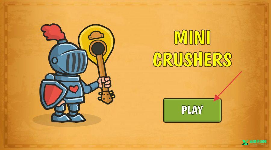 1、在游戏启动界面,点击绿色【PLAY】按钮,进入《MINI-CRUSHERS》游戏。