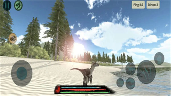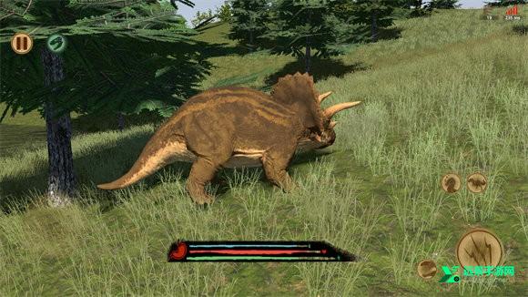 4、游戏开始后,屏幕左侧将控制恐龙的移动,而右侧则设有攻击、奔跑、休息和喊叫的按钮。