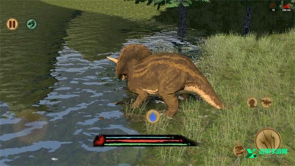 6、自由在地图里探索来击败其他恐龙,寻找其他资源来补充自己的状态,不断击败其他玩家成为最厉害的恐龙。