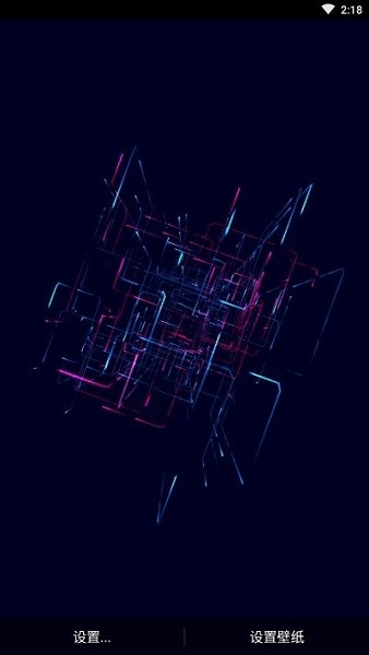 1.打开软件后,壁纸样式只有一个,那就是用各种发出炫彩霓虹灯效果的线条相互交错和重力感应来让壁纸产生空间感的效果,让人一看就觉得是黑科技