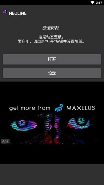 2.点击打开后可以预览壁纸的线条颜色和背景颜色,这些都是可以在设置中改变的