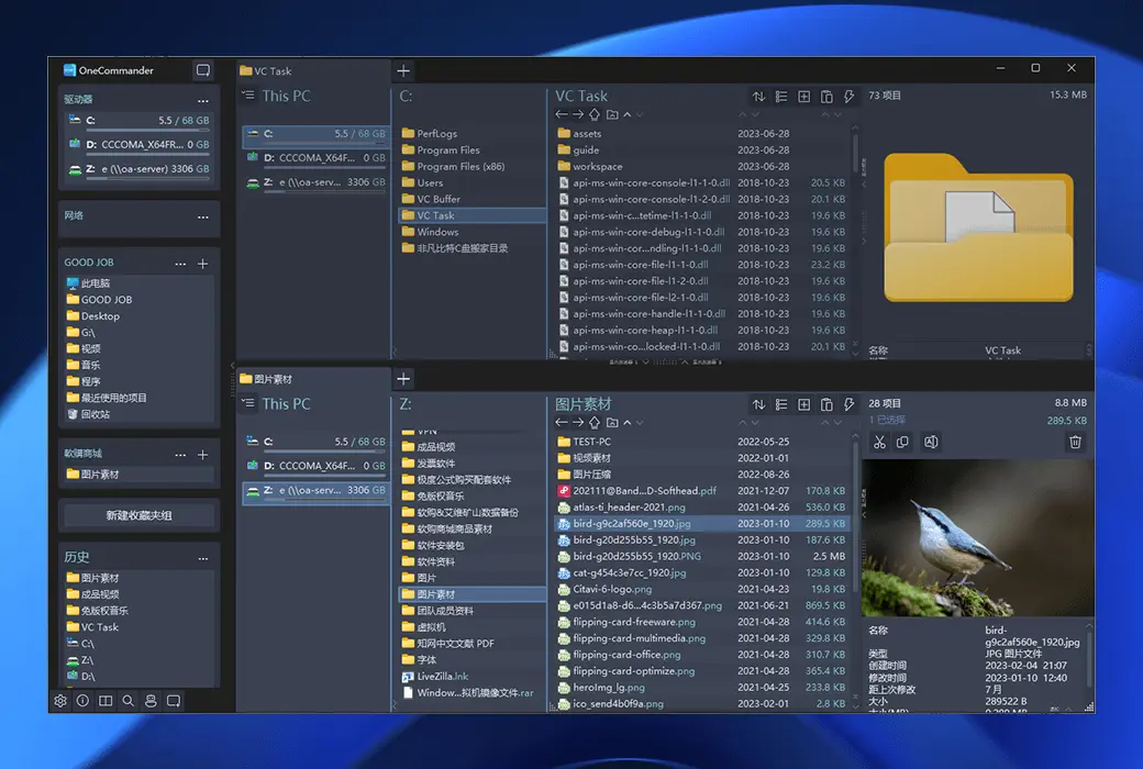 双窗格界面:用户可以在同一个窗口中打开两个文件夹,方便在不同文件夹之间进行复制、移动等操作,极大地提升了文件管理的效率。