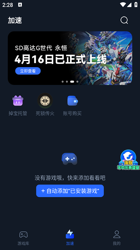 3、游戏下载与更新:内置游戏库,支持直接下载,自动适配机型并优化下载速度,游戏更新时优先加速资源加载,避免因网络波动导致更新中断。