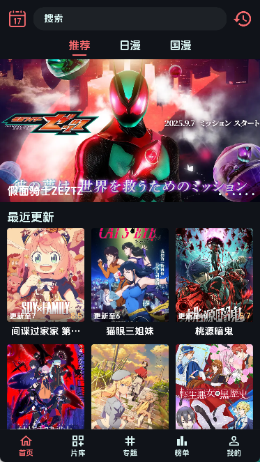 - 首页展示各种不同类型的优质动漫资源,带来精彩观看体验。