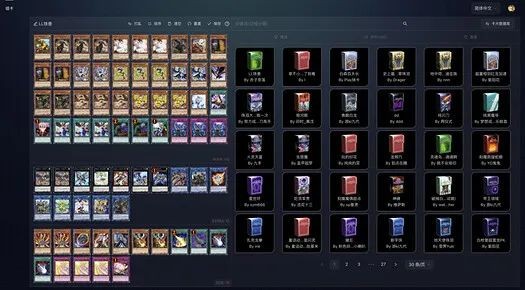 左键点击卡组即可查看在线卡组的构筑,比如下图点击了赤子大佬上传的 “LL铁兽”,卡组构筑就会显示在左边的编辑区中: