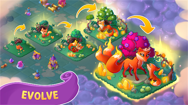 魔法生物收集:可捕获并进化龙、独角兽等数十种传说生物。为它们打造专属栖息地,生物会产出特殊资源。收集图鉴满足收集癖,进化形态提升产出效率,形成"合成-养宠-资源反哺"的循环。