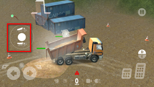 9.此时会出现倾倒泥土的轮盘,我们可以自由操作上下倾倒卡车斗子