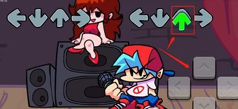 1、如图所示,进入音乐对局,等顶部图标重合,按右下角方向键点亮。