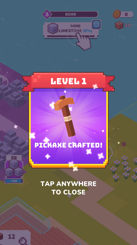 4.完成一个小目标,会奖励区域扩展,我们需要去砍伐更多的树木来建造