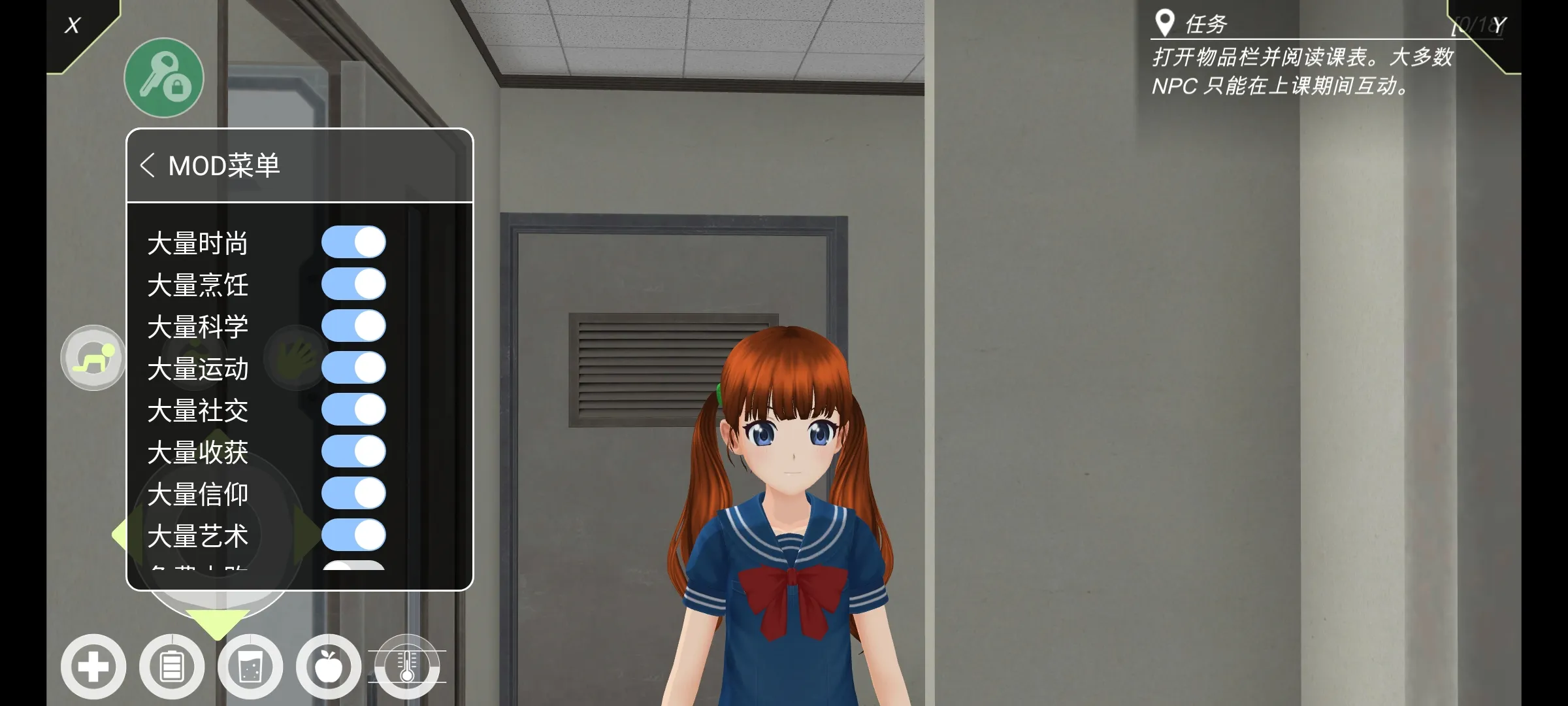* 技能:你角色的技能(时尚、烹饪、科学、体育、社交、园艺、信仰、艺术)会影响你的个人数据以及你与其他角色互动的成功率。提升这些技能需要参与学校活动或课外俱乐部。