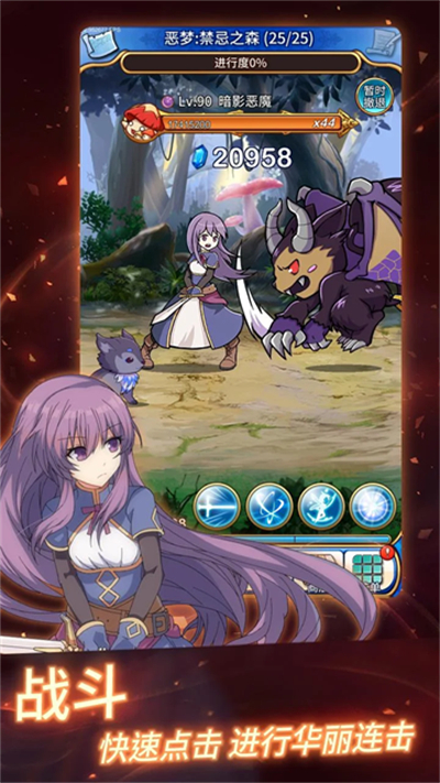 摒弃传统ARPG复杂按键,采用"移动即攻击"的极简设计,点击方向自动挥剑,长按冲刺,上手零门槛。中后期解锁跳跃斩、远程投掷等技能后,战斗节奏明快且富有策略深度。