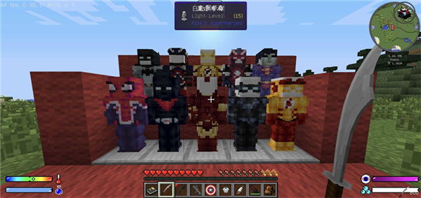 我的世界超级英雄mod是由玩家自制的我的世界漫威英雄模组,在这个模组中你能够在MC我的世界游戏中添加非常多的漫威英雄皮肤,并且还能够时装漫威英雄们的武器,包括美队的盾牌以及雷神的雷神之锤等等。在我的世界超级英雄mod手机版中,你能够通过这个模组与你的好友在我的世界中扮演自己喜欢的漫威英雄,在这里展开属于自己的漫威英雄故事。
