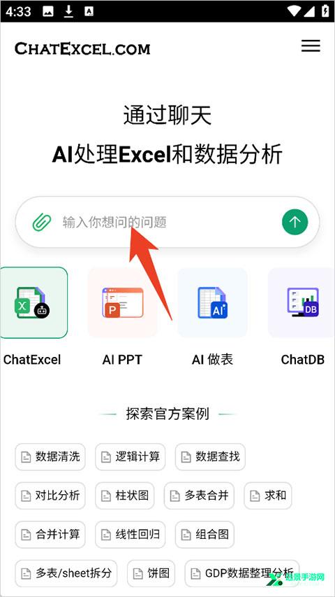 1、打开登录酷表ChatExcel app后点击输入框
