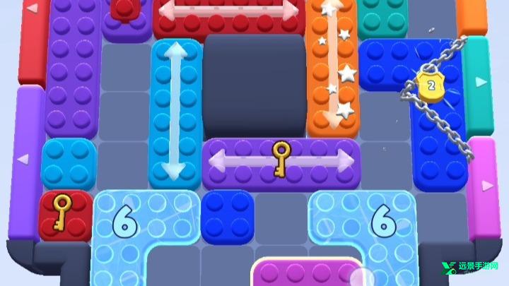 1、滑动方块:将彩色方块移动到相应的彩色门上