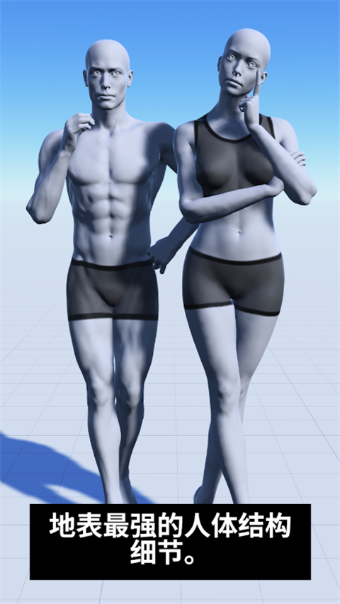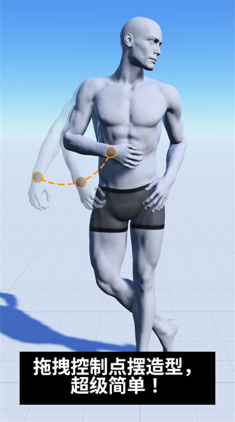 5.游戏支持高度自由的模型操控方式:通过拖拽控制点,可快速调整模型姿势;支持任意平移或缩放视图,实现360度全方位观察;内置丰富的免费模型库,涵盖男性、女性、男孩、女孩等多种角色,并支持写实与动漫风格自由切换