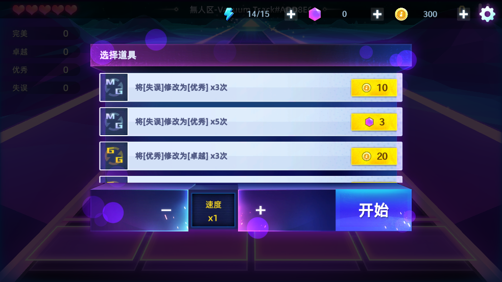3、过程中界面的左上角会记录着玩家的成绩,完美、卓越、失误等。