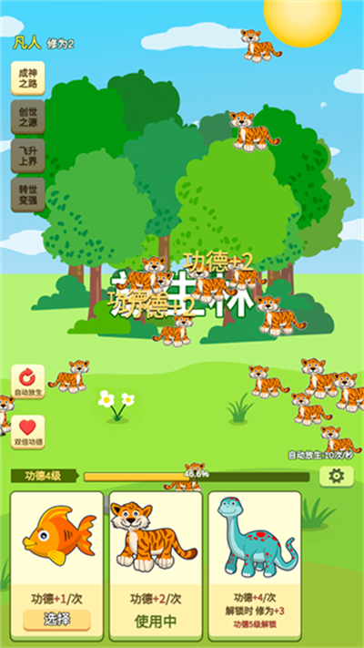 每放生一只动物即弹出功德+1特效,配合清脆音效形成条件反射式爽感,解压效果堪比电子木鱼。