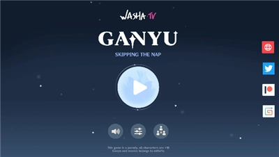 1、打开游戏后,点击播放按钮进入游戏主界面,可通过下方的音量、设置、角色等按钮进行相关操作,也可查看游戏的社交媒体链接等信息。
