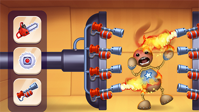 不同背景暗藏可破坏元素,利用环境道具制造连锁反应。将木偶人扔进毒锅或绑上火箭发射,创造属于你的处刑艺术。