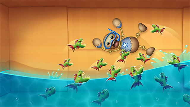 5. 游戏中,我们不断打击形态各异的小木偶,将它们打得越狠,武器威力越强;