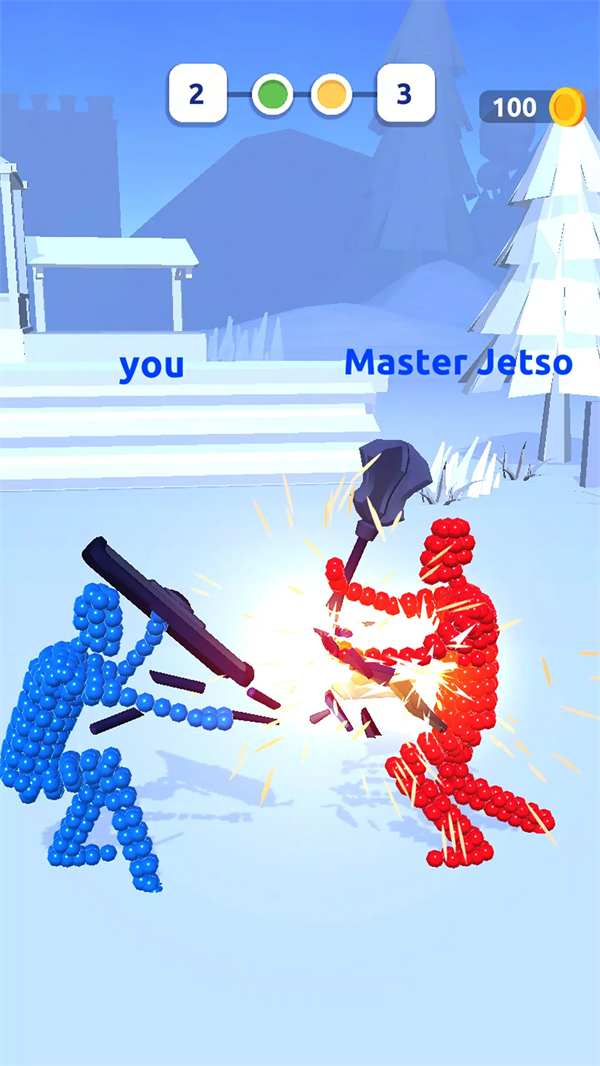 打得过我吗是一款的3D粒子格斗手游。在游戏中,玩家操控由气球状粒子构成的橡皮小人,通过拖拽关节来灵活调整战斗姿态,在瞬息万变的对决中寻找那一击制胜的绝佳角度。打得过我吗游戏以“姿势即策略”为核心设计理念,将先进的物理模拟与紧张刺激的即时对战完美融合,让每场战斗都成为一场空间几何与时机把握的双重考验。玩家不仅需要具备出色的反应速度,还要运用智慧巧妙地调整角色姿势,以在激烈的对战中占据上风。