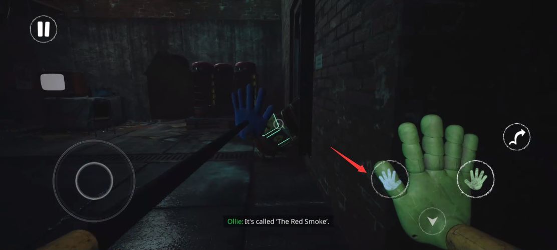 4. 如图所示,玩家需通过操控左侧的移动按钮来灵活控制人物行动,并巧妙躲避敌人的追捕,同时可参考右侧箭头指示,获取重要提示。