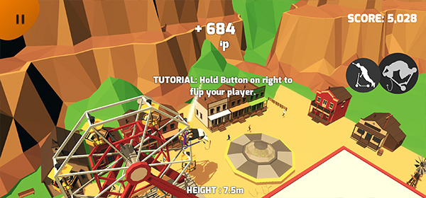4.游戏开始后,你将在滑板场上不断上下滑行。当你空中飞行时,利用这个宝贵的时间进行各种高难度动作。每次成功完成特技动作后,你都会获得分数奖励