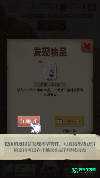 7、此外,在开采挖掘的过程中会随机出现稀罕物件,可直接出售获得粮票,也可以在小摊展出获得持续性收益。