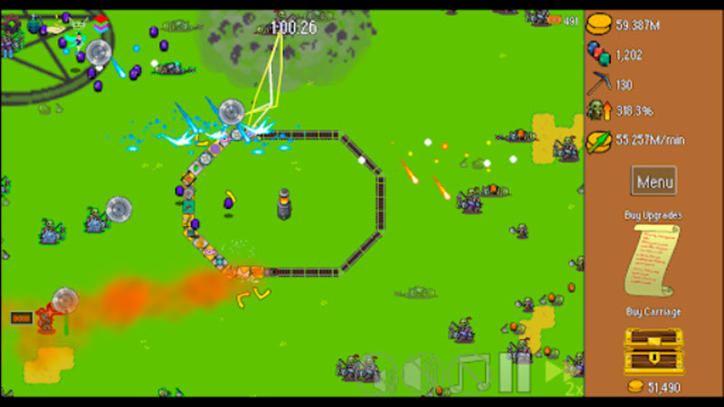 全体就位火车防御特快是一款以火车为主题的策略塔防手游,在这里你将拥有一辆专用于攻打兽人的特快列车,在固定的圆环轨道上奔跑,迎战四处来袭的兽人。在全体就位火车防御特快手游汉化版中,拥有非常多不同类型的炮台武器可以搭载在你的火车上,让你的火车火力大大提升,每隔一段时间就可以获得金币收益,这些金币可以用于在商店中购买更多强力的武器。
