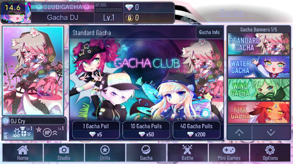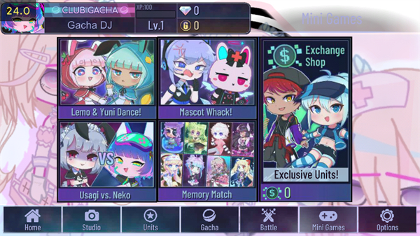在这个小游戏中Lemo和Yuni两人会以一组舞步来示意接下来要求让玩家输入的箭头(两侧,上下左右)。 玩家在本游戏中有5次机会,其中一个出错则扣一次,扣完游戏结束。 Easy难度下每1分可获得3倍Bits,每10分可获得一个Gems;Hard难度下每1分可获得4倍Bits,每5分可获得一个Gems。
