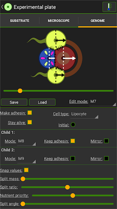 20种细胞模式支持22项参数微调,从游动速度到分裂周期均可定制,构建光合自养、掠食吞噬等多样化生存策略,创造独一无二的生物设计。