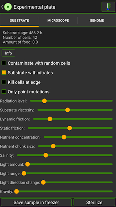 细胞实验室游戏是一款微观细菌模拟观察游戏,玩家化身微观世界的造物主,在虚拟培养皿中设计并培育多细胞生物,通过调整基因组参数与环境变量,让生命在极端温度、辐射污染等严苛条件下存活繁衍。细胞实验室游戏包含45个科学挑战与自由实验模式,以矢量图形呈现细胞分裂、进化与突变过程,在简约科技美学中探索生命本质,是融合科普教育与策略深度的独特模拟体验。