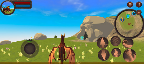 3.进入这个世界内,左下角可以控制龙自由移动,右下角是部分技能按钮,近战、远程、加速、以及飞翔等,加速需要搭配左下角一起使用,龙会更快地移动