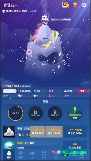 1、首先在【石头】标签中,我们可以通过点击石头,来使孤独的珊瑚石成长,随着【珊瑚石】升级,每次点击产出的生命将增加。石头每25级可以获得点击生命产量的翻倍奖励。所以石头一定要以25级为单位升一次,因为单次升级石头获得的点击产量提升微乎其微,主要还是靠每25级的产量翻倍奖励。