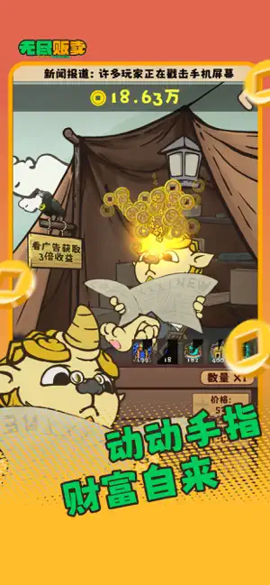 无尽贩卖游戏是一款以地摊经营为主要玩法的模拟经营类游戏,在游戏中玩家将要从街头小摊起步,通过购入热销商品然后卖出,积累资金逐步扩展自己的业务,并最终建立属于自己的商业帝国。无尽贩卖游戏采用清新的Q版画风,将放置收益与策略经营相结合,玩家可以在轻松点击的过程中感受商业上的成长,避免复杂的经营操作,并获得一定的成就感。