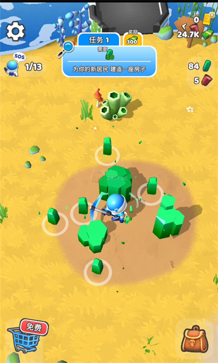 1.游戏玩法很简单,单手操控宇航员行走即可,靠近资源即会开采资源,通过收集资源解锁新的地方,不断探索解开这个星球的谜题