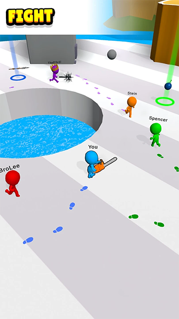 每个关卡都设计有独特的战斗地形和隐藏要素,需要玩家不断适应新的环境特点。在等级1的场景中靠近武器区域获取弓箭,提升攻击能力关注右上角的排名,操控角色移动。注意观察场景中的武器刷新点,及时补充弹药才能保持火力压制。