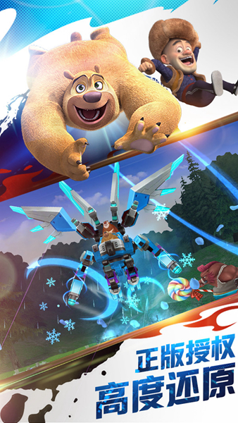 游戏由熊出没动画正版授权,完美的呈现出了原版动画角色的特点。同时还拥有环环相扣的冒险关卡设定和电影级画面的大型3D场景,必定能让玩家体验到前所未有的机甲格斗快感!