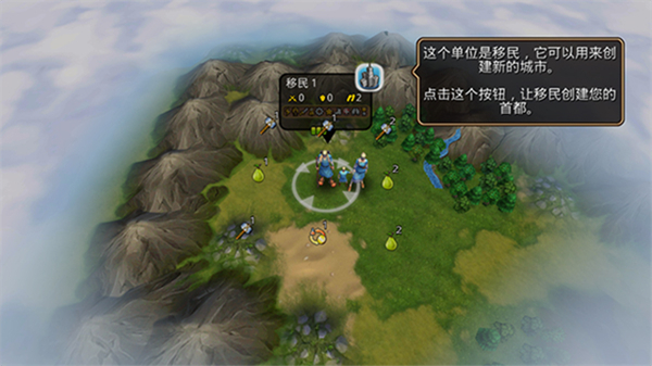2、新手教学任务非常简单:先建立一座城市,组建一支军队,击败附近的野蛮人营地,并最终发现一件文物。
