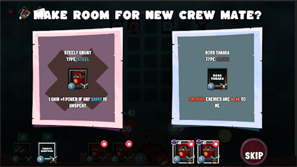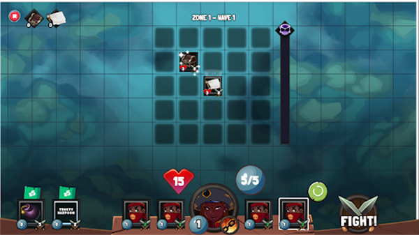 5x5网格战场:每场战斗都在5x5的棋盘上进行,你需要精心部署船员位置,利用站位和技能协同击败敌人。