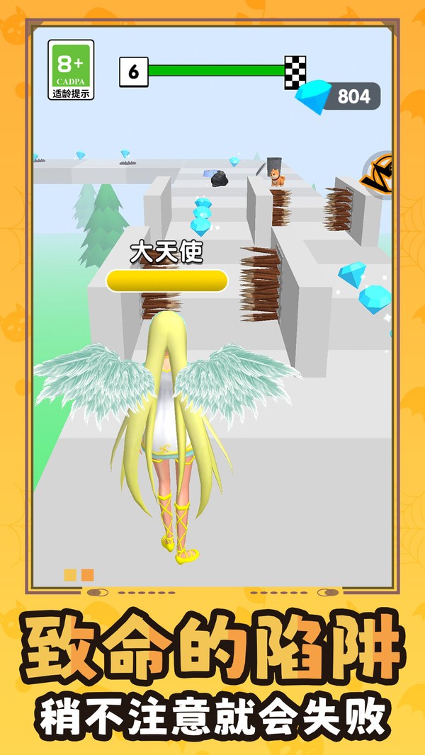 1.奔跑与跳跃:通过触屏控制少女的奔跑与跳跃,避开障碍与陷阱,保持节奏与速度,力争刷新最高记录
