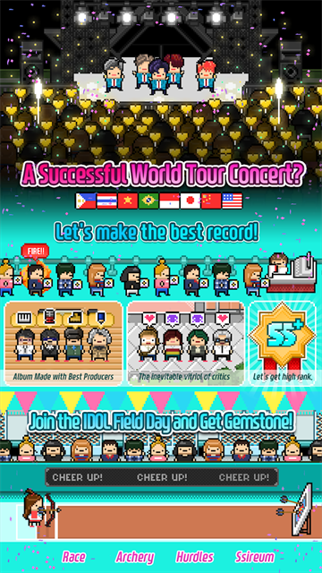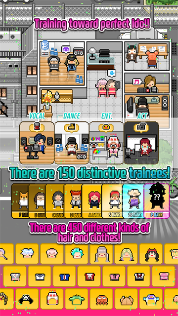 月刊偶像是一款以偶像养成为主要玩法的游戏,这款游戏采用了怀旧的Q版像素画风,游戏中的偶像都是由像素小人的风格组成,只是通过发型、服饰和动作来区分不同的任务。玩家在月刊偶像中需要从零开始招募并培养一支偶像团体,安排它们的演出日程并控制偶像们的精神窗台。游戏中的每名偶像都有独立的属性面板,玩家必须自己观察找到合适的偶像进行训练。