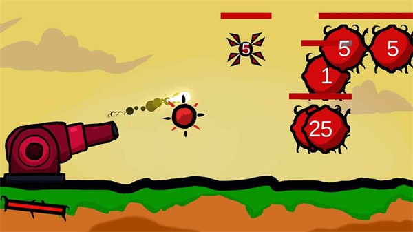 大炮模拟器是一款卡通风格的射击闯关游戏,在游戏里你将可以亲自操控大炮发射炮弹来打击天空中漂浮而来的诡异生物,每一个诡异生物上都带有不一样的数字,这个数字就是他们的生命值。在大炮模拟器游戏中,拥有海量关卡提供给玩家挑战,随着关卡的深入,敌人的数量会越来越多血条也越来越厚,非常考验玩家的手速以及精准度。